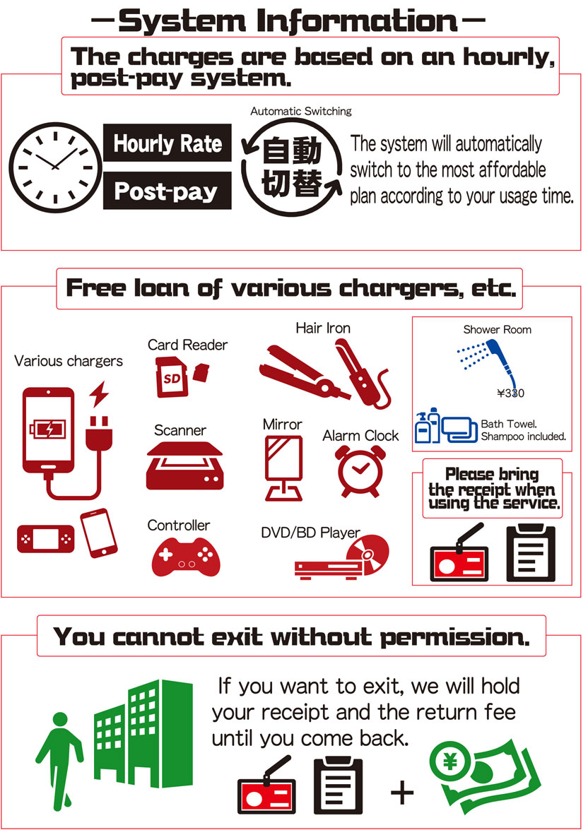 | Extras: | All-you-can-drink beverages, paid printing service, free charging cables, and free laundry |