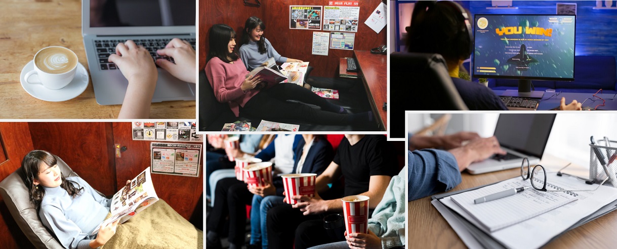 インターネット、コミック、雑誌、オンラインゲーム、無料映画配信 など、 あなただけの時間をお過ごしください。