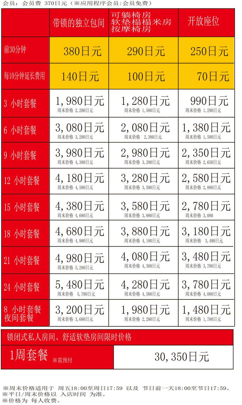 其他服务 | 饮料无限畅饮、收费打印服务、免费充电线租借、免费洗衣 |